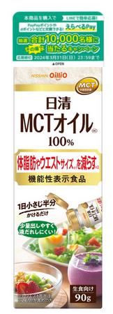 日清オイリオグループ株式会社(社長:久野 貴久)は、LINE応募限定の「日清MCTオイルを買ってえらべるPayがその場で当たる!」キャンペーンを2024年3月31日(日)まで実施しています。
