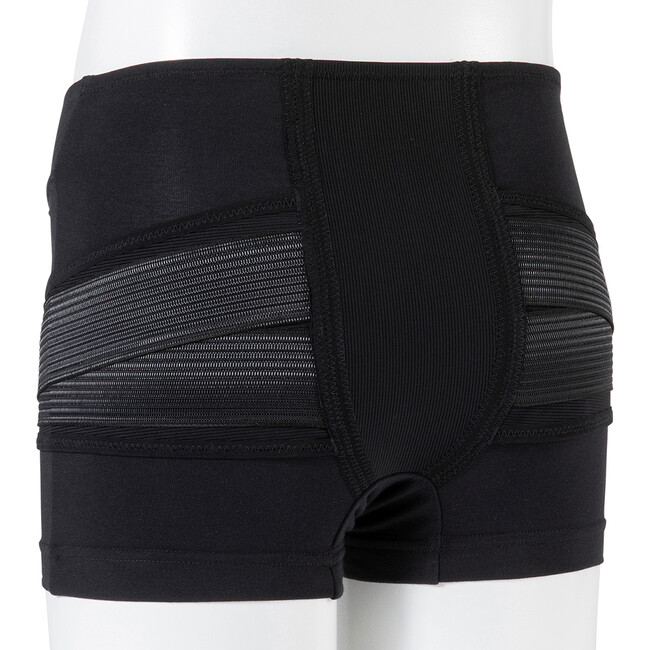パンツタイプなので、自分自身でベルトを骨盤位置に調整する必要がなく、履くだけで簡単に正しい位置に着けられ、着けはずしも楽に行うことができます。また、身体にしっかりフィットする立体設計でズレにくいうえ、2段階で骨盤を締める最適な形状に設計されたベルトで、骨盤をしっかり安定させることができます。