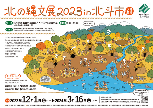 昨年の夏、多くの皆さまにご来場いただいた「北海道博物館第9回特別展『ユネスコ世界遺産登録記念 北の縄文世界と国宝』」のダイジェストと、協力機関が所蔵する遺物等により、「北の縄文」(ユネスコ世界遺産「北海道・北東北の縄文遺跡群」と道内全域に所在する縄文遺跡や縄文文化)の魅力を発信するための展示会を開催中です。