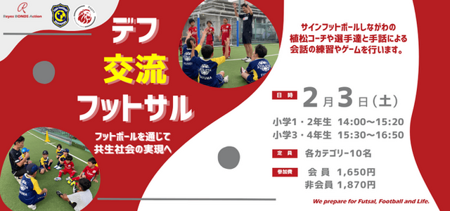 前回ご好評いただきましたフットボールを通じて出会いと成長を支援するレイエスボンズアクションの活動として、サインフットボールしながわのお子様とデフ交流フットサルを開催いたします。