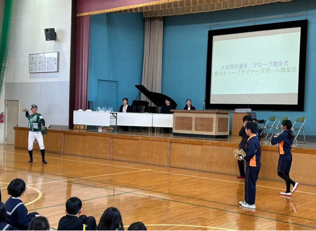 大谷翔平選手のグラブを始業式でお披露目 児童「大谷選手のような選手になりたい」 高松市