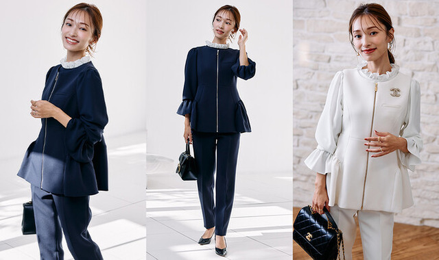 “M Maglie le cassettoを好きでいてくださるママの普段着”をコンセプトに、お子様の送り迎えや普段着ながらママ会・行事にも着ていける上品で大人可愛いパンツスタイルをママインフルエンサー・吉田理紗さんとコラボレーション。「ママの日常」に寄り添い、ファッションでそのお手伝いが出来るような、好印象で華やかなオケ服が完成しました。