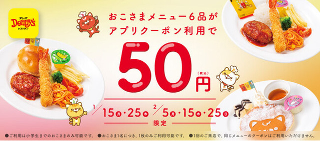 株式会社セブン&アイ・フードシステムズ(本社:東京都千代田区、代表取締役社長:小松雅美)は、2024年1月15日(月)、25日(木)、2月5日(月)、15日(木)、25日(日)に「デニーズアプリ」でおこさまメニューの対象6品が50円(税込)となるクーポンを配信します。