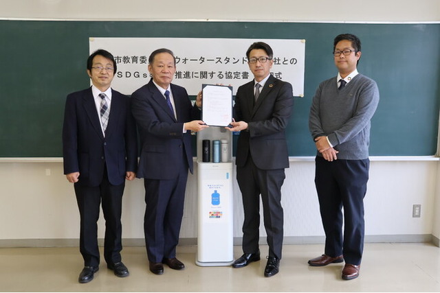 本協定により、市内の小中学校にウォータースタンドを設置することで、児童生徒が環境問題に対して関心を持つとともに、SDGs教育を通じて、未来を担う人づくりにつながることを大いに期待しております。
