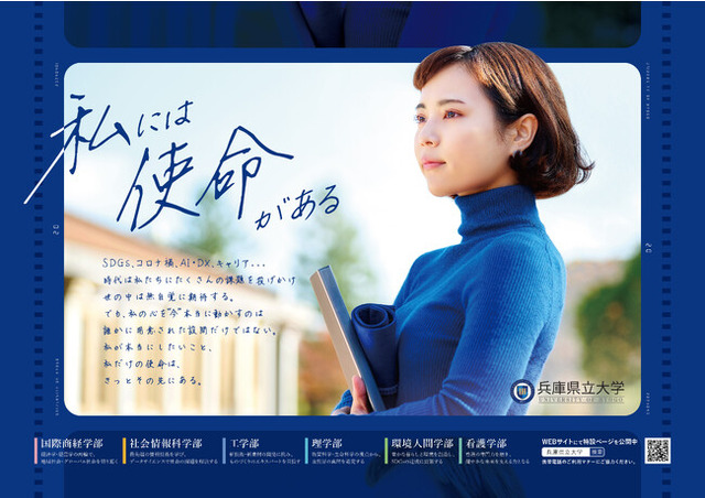 社会課題が溢れる世の中で、高校生・大学生にも、社会課題解決の担い手としての期待が向けられています。しかし、学生たちの本質的な成長は、一方的に投げられた課題や期待からではなく、学生自身の興味や関心を突き詰めた先にあるものではないでしょうか。兵庫県立大学は、学生一人ひとりが本当に望む学びの先に、それぞれの「使命」が見つかることを願い、夢に向かって努力する全ての学生を応援したいというメッセージを込めたポスター・動画を制作し、特設サイトを開設しました。