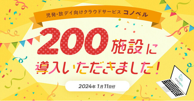 VISH株式会社(本社:愛知県名古屋市、代表取締役:田淵 浩之)は、児童発達支援・放課後等デイサービス向けに開発・提供しているクラウドサービス「コノベル」の導入施設数が2024年1月11日に累計200施設に導入されたことをお知らせいたします。