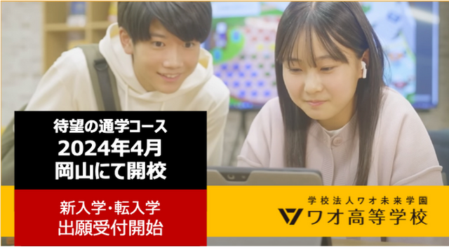 激動の時代を生き抜く力を、実学と教養によって育む、学校法人ワオ未来学園ワオ高等学校(本校所在地岡山県岡山市 校長山本潮)(以下ワオ高校)は、2021年4月開校。好きな時間に好きな場所で学ぶことができる完全オンラインの学校として、未来型の学びを提供しています。