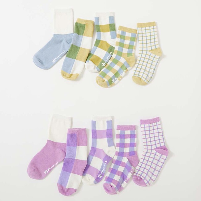 どの柄を組み合わせても成立する、左右バラバラのデザインがかわいいソックス。
