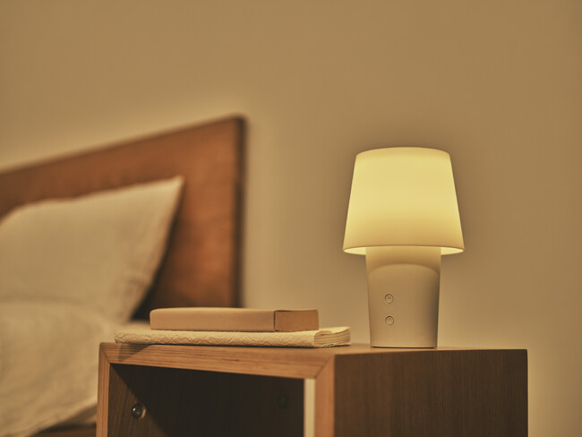 また、好きな明るさでお部屋を灯せる電球色のLEDライトは無段階調光式で、ライトボタンを押すと明るさが最小→最大→最小の順で自動的に変わります。もう一度ライトボタンを押すとお好みの明るさに固定することも可能です。(調光モードは17秒間で繰り返します。)