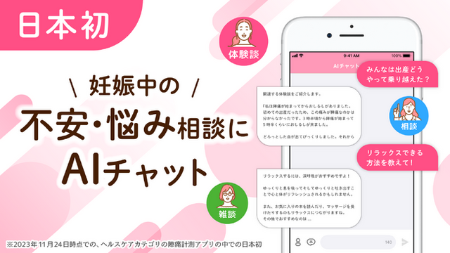 ※2:2023年11月24日時点でのヘルスケアカテゴリの陣痛計測アプリの中で日本初(当社調べ)