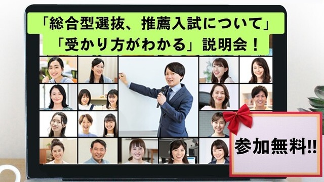 この説明会では、今すぐ知らないと大学入試で損をしてしまう「総合型選抜と推薦入試について」「総合型選抜や推薦入試で合格する方法」を詳しく解説しますので、高校2年生の方・保護者の方はぜひご参加ください。