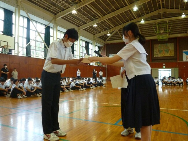 【表彰を受ける体育委員長】