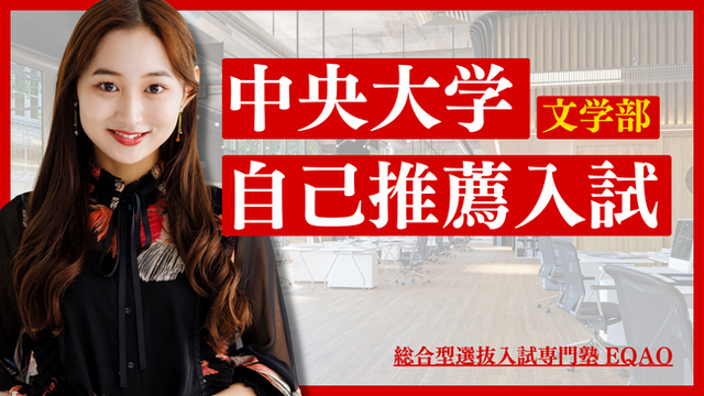【総合型選抜専門塾EQAOには、中央大学文学部に合格体験のある講師が在中しています】中央大学文学部に現役合格したいなら、総合型選抜専門塾EQAO!〈1/18~〉受付開始の無料体験授業では、中央大学文学部に合格体験のある講師と、一時間無料で対談できます。合格の秘訣、自己推薦入試についての詳しい説明など、様々なことを相談してみませんか?少しでも中央大学文学部自己推薦入試に興味のある方は、ぜひEQAOの無料体験授業へお越しください!