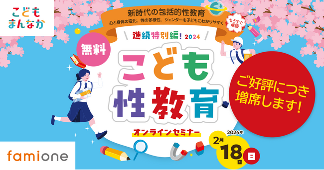 「 子どもを願うすべての人によりそい 幸せな人生を歩める社会をつくる 」 をビジョンに掲げ、LINE を活用した妊活コンシェルジュサービス 「 famione (ファミワン)」 https://lp.famione.com/ を提供する株式会社ファミワン(本社:東京都渋谷区 、 代表取締役:石川勇介 、以下当社 )は この度オンラインイベント、「進級特別編!こども性教育2024」を2024年2月18日に開催します。