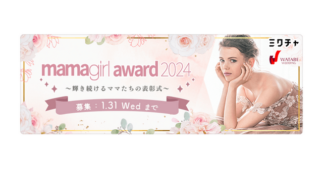 このたび開催する「mamagirl award2024」は、「ミクチャ」でのライブ配信と動画投稿での獲得ポイントを審査対象とし、予選を勝ち抜いた上位15名により決勝を行います。決勝で見事グランプリ・準グランプリ・3位に選ばれた3名は、2024年4月20日(土)に都内会場にて行われる表彰式にワタベウェディング株式会社( https://www.watabe-wedding.co.jp/ )提供のカラードレスを着用してご出席いただくなど、非日常の豪華な体験もご用意しています。