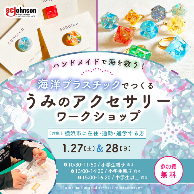 今回新たに始まる「ハンドメイドで海を救う!海洋プラスチックでつくる うみのアクセサリーワークショップ」は、「“可愛い”で地球を守る」をコンセプトに、海洋プラスチックを素材としたアクセサリーを制作しているブランド「sobolon」とのコラボレーションで実施されます。