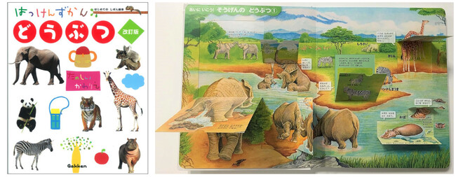 はっけんずかんは、めくるとかわる絵を楽しみながら、お子さまが本の中で自ら「はっけん」して遊べる絵本図鑑シリーズです。イラストのしかけページと、写真で紹介する図鑑ページで交互に構成されているので、飽きずに楽しく知識が身につきます。