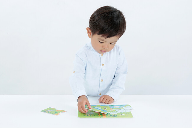 「はっけんパズル」シリーズは、テーマの異なる全6種類。それぞれ絵柄とピース数の異なるパズルが各3セット入りで、お子さまの興味や成長に合わせて選んでいただき、ステップアップしながら遊ぶことができます。