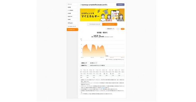 マイエネルギーナビは、家庭の電力会社を変更しても継続的に電気の使用量や電気料金の確認ができ、継続して節電や節約に取り組むことができる機能です。