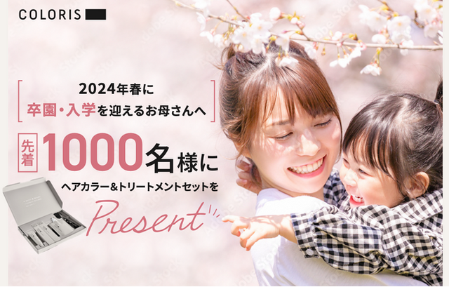 - 今年ハレの日を迎えるお母様へ以下の特設ページからお申し込みフォームへお進みください。お申し込みいただいたメール宛に、プレゼント品送付についてのご案内をお送りさせていただきます。(申込期間:本日~2024年3月15日まで)https://coloris.shop/content/springcampaign2024/