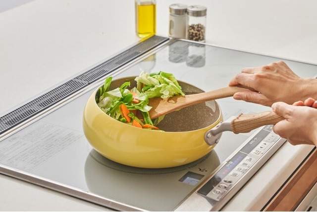料理の汚れを減らすほか、独自形状により振りやすく、新生活に向け料理を始める人にもちょうどいいフライパンとなっています。