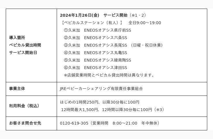 久米加株式会社(本社:香川県高松市、代表取締役社長:久米栄治)は、地域密着をコンセプトとしたガソリンスタンドを県内に11店舗展開しています。一人でも多くのお客様に笑顔を届けられるよう日々業務に取り組んでいます。この度、子育て支援の一環として、ベビーカーレンタルサービス「ベビカル」を県内6店舗で開始することとなりました。