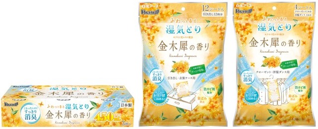 白元アース株式会社(本社:東京都足立区、社長:吉村一人)は、湿気を吸って液がたまるタンクタイプの芳香除湿剤『ドライ&ドライUP 金木犀の香り 450mL』、吸った湿気をゼリー状に固めるシートタイプの芳香除湿剤『ドライ&ドライUP 引き出し・衣装ケース用 金木犀の香り/クローゼット・洋服ダンス用 金木犀の香り』を2月1日より新発売いたします。