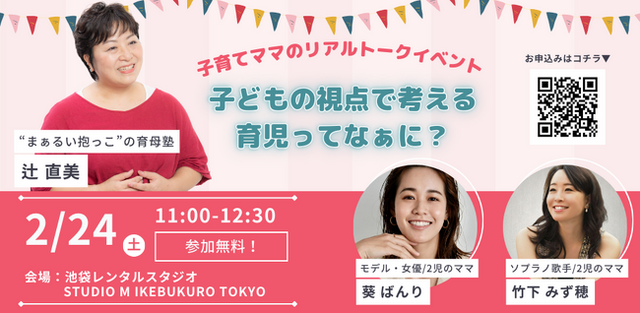 赤ちゃんが泣き止む?!まぁるい抱っこで話題の育母塾・代表理事 辻直美と、子育てしながら第一線で活躍するお二人のママをゲストに迎えてトークイベントを開催します。辻直美は、看護師として患者さんとの交流や二人の息子の子育て、義父母の介護経験から、相手の身も心もまぁるく包み込む「まぁるい抱っこ(R)」と、“まぁるい抱っこ”を再現することができるスリングである「アルマスリング(R)」を考案しました。アルマスリングは1月11日の販売からわずかで完売。(毎月11日入荷:アルマスリング販売サイト:https://x.gd/89op5)他にも、辻はそのマインドと「まぁるい抱っこ的育児」をお伝えすべくオンラインや全国で精力的に講座を開催しています。