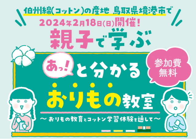 地球にも人間にも優しいコットンについて、いつから何に使われ始めたのか、どうやって育ち収穫するのか学び、境港市の特産品、伯州綿の起源や歴史を紐解きます。