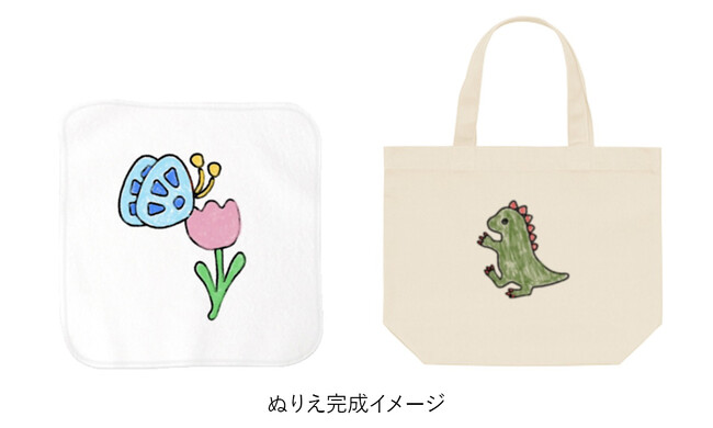 iPadを使ってケユカのオリジナルイラストを塗り絵。塗り絵されたケユカのイラストを使用し、バッグやハンカチなどのアイテムへプリントし自分だけのアイテムを作れます。プリントしたアイテムは後日、郵送でご自宅へお届けします。