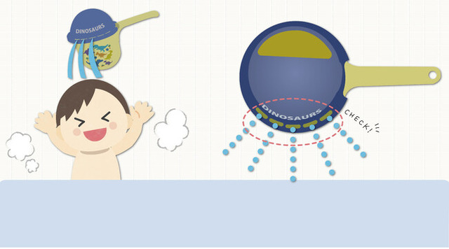 そこで子供の水・お湯への恐怖心を減らすため、頭にかけるお湯の量を調整できる湯おけを開発しました。上部のフタを外せば通常の湯おけにもなるので、家族で使えます。
