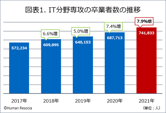 ●世界42カ国のIT分野の卒業者数は前年比7.9%増、STEM分野は同3.3%増