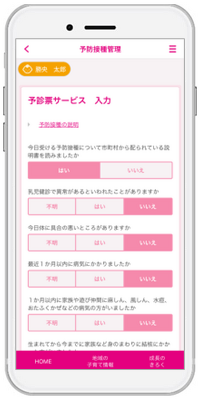 予防接種に係る手間を削減するため、今回「小児予防接種サービス」を導入しました。保護者のみなさんが安心して子育てができるように、この機能をご活用いただければと思います。