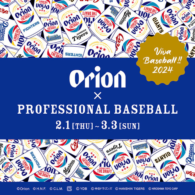 オリオンビール株式会社(沖縄県豊見城市、代表取締役社長 兼 執行役員社長CEO 村野 一)は、沖縄県内で開催されるプロ野球チームの春季キャンプにあわせた、各球団とオリオンビールの公式コラボグッズ「Orion×PROFESSIONAL BASEBALL」シリーズを2024年2月1日より順次発売いたします。