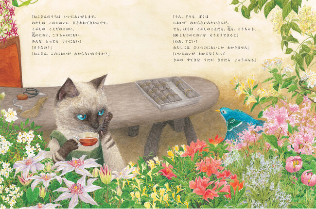・深呼吸がしたくなる1冊です。花と太陽のにおいや、柔らかな花びらと小枝の華奢な凹凸も感じることができます。豊かな視点の変化に「ねこ」にも「ことり」にもなることが出来ました。遠くを見つめる猫の澄んだ目が、心にずっと残っています。(ブックエース新取手店 熱海)