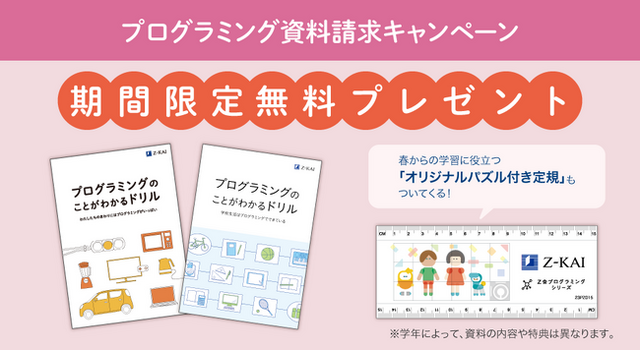 株式会社増進会ホールディングス(Z会グループ)のグループ会社である株式会社Z会は、年長~中学生向けの自宅で学べる「Z会プログラミングシリーズ」において、資料請求いただくと期間限定の特典を無料プレゼントするキャンペーンを2024年2月29日(木)まで実施中です。新しい習い事にプログラミングを検討中の方におすすめです。ぜひこの機会にご請求ください。