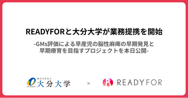日本初・国内最大級のクラウドファンディングサービス「READYFOR」を運営するREADYFOR株式会社(本社:東京都千代田区、 代表:米良はるか)と大分大学(所在地:大分県大分市、学長:北野正剛)は、業務提携を締結し、本日、第一号としてクラウドファンディングプロジェクト「小さな生命の健やかな発達を目指して|医療者に学びの機会を提供したい」を公開いたしました。