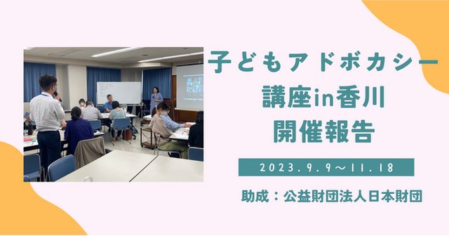 NPO法人全国子どもアドボカシー協議会(所在地:福岡県福岡市中央区、理事長:相澤 仁)は、NPO法人丸亀街づくり研究所「アドボカシー事業所 ここまい」(理事長:合木 啓雄)と共催で、9/9(土)~11/18(土)に香川県内で初めて「子どもアドボカシー講座」を開講いたしました。香川県在住の方だけでなく、全国から基礎・養成講座合わせて延べ100名の方に受講いただきました。