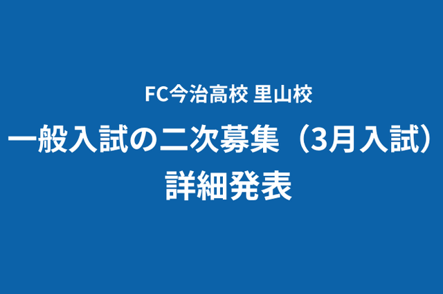サッカー元日本代表監督で社会起業家の岡田武史が学園長を務め、新時代のキャプテンを育てる「FC今治高等学校 里山校」(運営:学校法人 今治明徳学園、理事長:村上康、以下FCI)は、2024年3月に実施する入試の詳細をお知らせいたします。