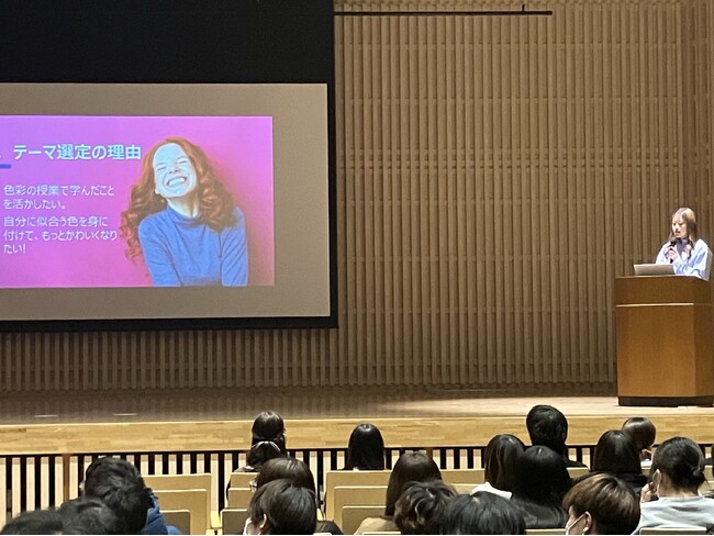 発表中は、ただプレゼンするのではなく参加者と一緒にパーソナルカラー診断を行う「参加型のプレゼン発表」を実施した。また、内容にビジネスでの活用法、就職活動での活用法など参加者の年齢層に合わせた内容にして、工夫をした。ただ内容を発表するのではなく、参加者に提案をすることで思いのこもったプレゼン発表になった。その結果、参加者からは「楽しみながら発表を聞くことができて、自分自身のパーソナルカラーを初めて知ることができた」や「これから就職試験のため、参考になった」と感想を述べてくれました。