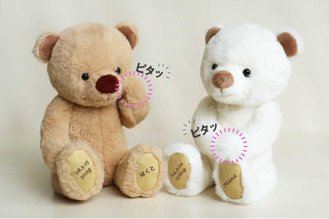 テディベアの足裏には、赤ちゃんの誕生日、体重、名前入り。