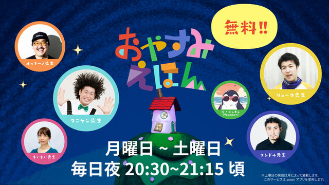 就寝前、絵本を選んでベッドに潜り込む子供たちをイメージし、オンラインを通して読み聞かせを行ってきた本サービス。谷本賢一郎氏を始めとする絵本朗読にピッタリの新メンバーを迎え、完全無料で月曜~土曜※の毎夜お届け致します!