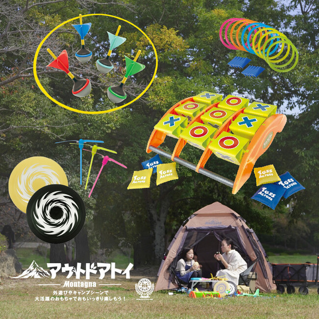 白熱の対戦を楽しめる「モンターナトスアクロス」や「モンターナローンダーツ」、懐かしの"ケンケンパ"で遊べる「モンターナ ループホッパー」をなどを新発売。また「フライングディスク」や「モンターナ フラッシュ!タケトンボ4P」といった、小さな子供でも大自然の中で感覚的に楽しめるアイテムも勢ぞろいです。