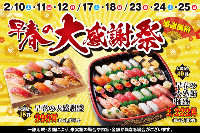 日頃のお客様のご愛顧に感謝の気持ちを込めて、ボリューム満点で好きなネタが盛りだくさん!『早春の大感謝祭』を開催いたします!!大変お買い得です!