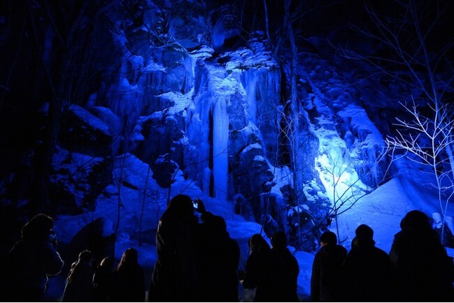 ライトアップされた氷瀑の絶景を楽しむ