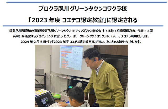 プロクラ夙川グリーンタウンコワクラ校 コエテコ認定教室2023年度