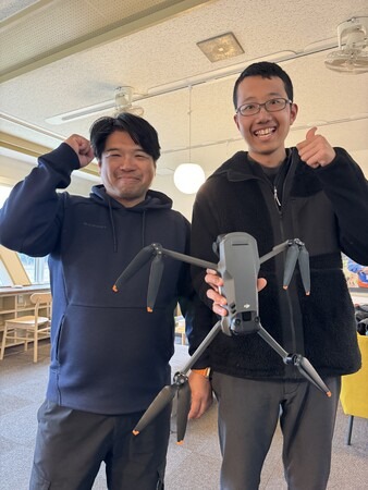 写真右: 1等無人航空機操縦士を取得した市田航輝さん
