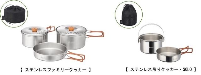スタッキング可能でコンパクトに持ち運びが可能なステンレス製のクッカーセット「ステンレスクッカー」シリーズ2種を、アウトドアライフでぜひともご活用ください。