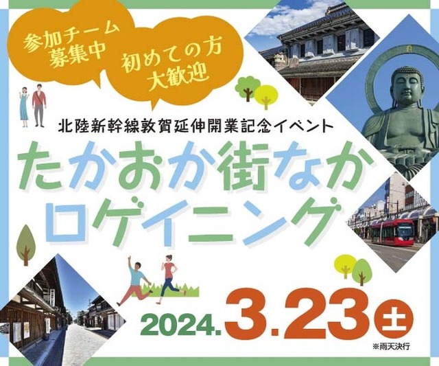 北陸新幹線 敦賀延伸開業を記念し、3月23日(土)、富山県の西側に位置する高岡市で、街なかを巡る「ロゲイニング」が開催されます。
