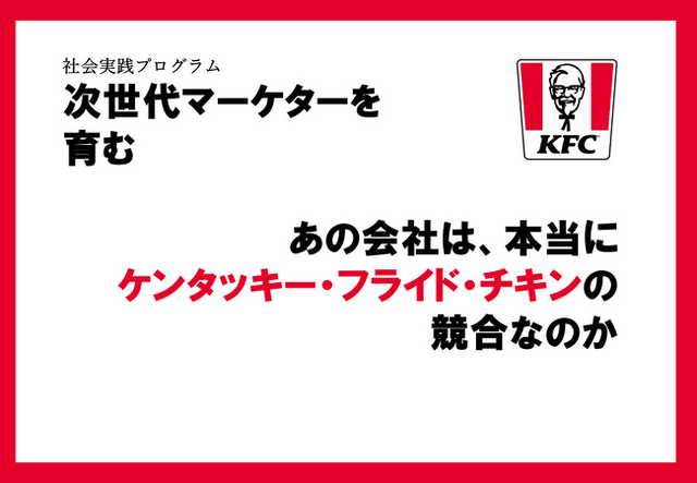 内容:実地調査とグループワークを通じ、競合調査、並びに次世代のKFC店舗開発について分析・発表します。小山氏、開発本部員数名を前に最終プレゼンを実施し、実際のビジネス環境での課題解決能力を養います。